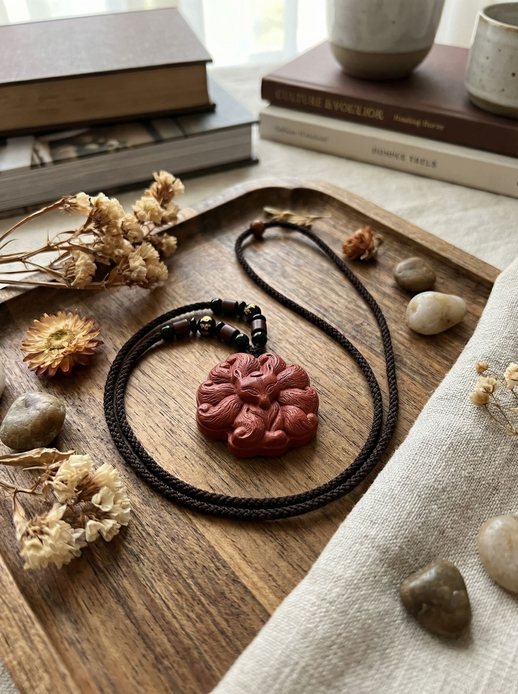 Discover the Vulpine Aura, a sophisticated botanical pendant that marries ancient wellness traditions with contemporary elegance. This artisanal piece combines Rose, Red Ginseng, and rare Agarwood in a carefully calibrated blend designed to calm the mind, enhance vitality, and diffuse a subtle, centering fragrance. More than jewellery, it functions as a personal sanctuary—a tangible reminder to pause and reconnect amidst life's demands. Handcrafted from pure natural botanicals, each pendant bears its own distinctive character, with variations in texture and hue that celebrate its authentic origins. Wear it as a statement of intention and self-care.